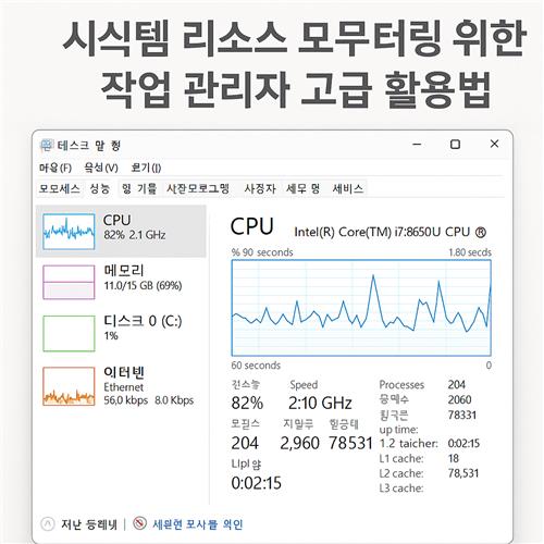작업 관리자, 시스템 리소스, 프로세스 분석, 성능 모니터링, 윈도우 팁, 시작프로그램 최적화, 서비스 관리, CPU 사용량, 메모리 정리, 고급 사용자 팁