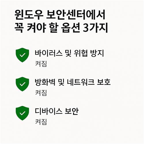 지금까지 살펴본 세 가지 보안 옵션만 잘 설정해두어도, 대부분의 보안 위협으로부터 내 PC를 안전하게 보호할 수 있습니다.