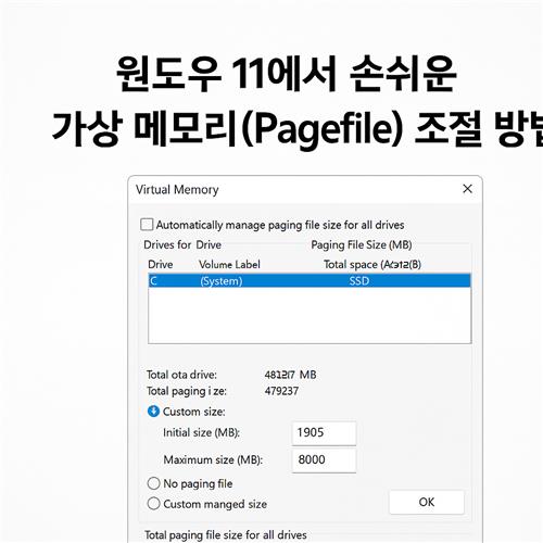 윈도우11, 가상메모리, pagefile, 시스템성능, 메모리최적화, SSD활용, RAM관리, 윈도우팁, 블루스크린예방, 컴퓨터속도향상