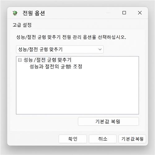 ⚠️ 주의: 절전 중심 설정은 영상 편집이나 게임, 고사양 프로그램 실행 시 성능 저하가 발생할 수 있습니다.