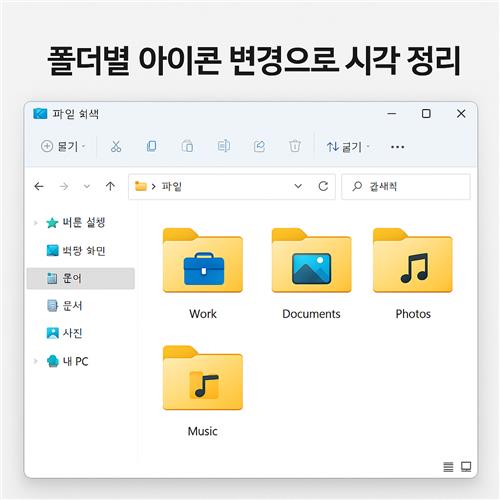 예를 들어 업무용 폴더는 노란색 아이콘, 사진 폴더는 카메라 아이콘, 프로젝트별로 다른 테마 아이콘을 지정해두면 파일 탐색기에서 원하는 폴더를 단번에 식별할 수 있게 되죠.