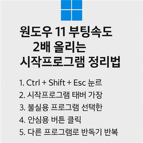 컴퓨터를 켤 때마다 바탕화면이 나오기까지 기다리는 시간이 점점 길어졌다면, 대부분의 원인은 시작프로그램(Startup Apps)과 백그라운드 항목이 쌓였기 때문일 가능성이 높습니다. 다행히도 윈도우 11은 시작프로그램을 한곳에서 파악하고 비활성화할 수 있는 도구가 잘 갖춰져 있어, 몇 가지 순서만 지켜 정리하면 체감 부팅속도가 크게 개선됩니다. 이 글에서는 초보자도 그대로 따라 할 수 있도록 5단계 체크리스트로 구성했으며, 각 단계마다 안전하게 적용하는 팁과 되돌리는 방법까지 꼼꼼히 안내합니다. 지금부터 하나씩 정리해 부팅 시간을 반으로 줄여 보세요.