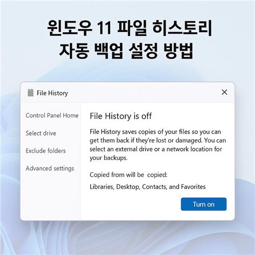 윈도우11, 파일히스토리, 자동백업, 윈도우백업, 데이터복원, 파일복구, 외장하드백업, PC보안, 백업설정, 윈도우기능