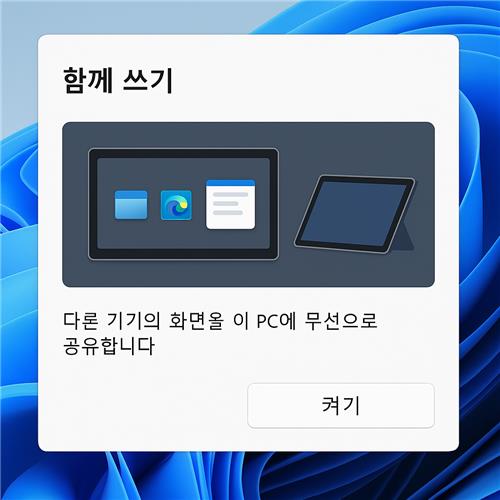 윈도우11, 함께쓰기, 화면공유, 원격제어, 디바이스연동, 마이크로소프트, 무선디스플레이, 윈도우기능, 윈도우팁, 기기연결