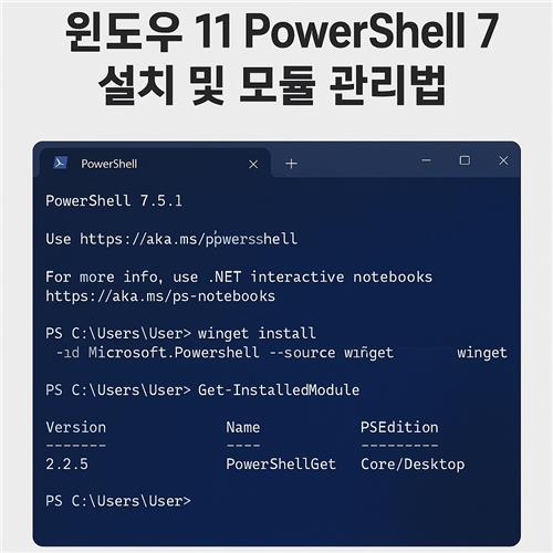 PowerShell 7, 윈도우 11, PowerShell 설치, 모듈 관리, 자동화 스크립트, 명령줄 도구, PowerShell 갤러리, 개발자 팁, Windows Terminal, 시스템 관리