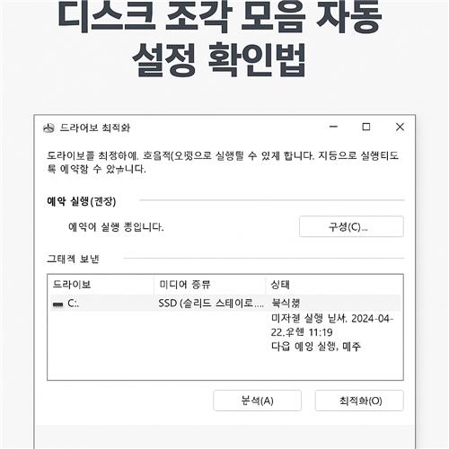 오늘은 윈도우10과 윈도우11에서 디스크 조각 모음 자동 설정을 확인하고 최적화하는 방법을 함께 알아보려 합니다.