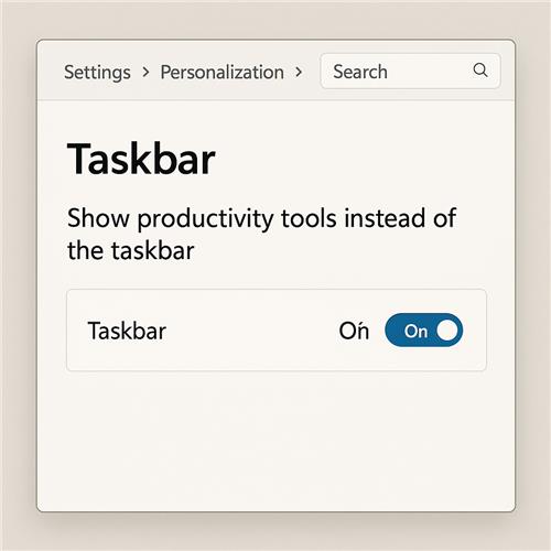 - '작업 표시줄을 자동으로 숨기기' 설정 ON필요할 때만 작업표시줄이 나타나 화면 공간을 더 넓게 사용 가능
