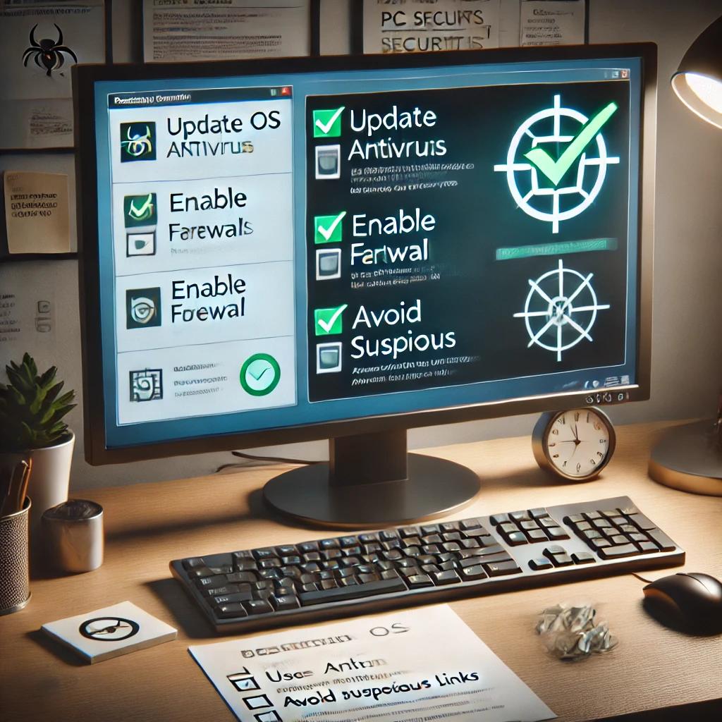 컴퓨터 보안, PC 바이러스, 윈도우 설정, 백신 프로그램, 방화벽 설정, 이메일 보안, 백업 방법, 해킹 방지, 계정 관리, 보안 습관