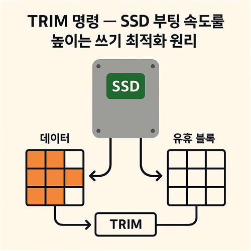 TRIM 명령, SSD 최적화, 부팅 속도 향상, 쓰기 성능 개선, 윈도우 SSD 설정, NVMe SSD, SATA SSD, 파일 시스템 관리, PC 튜닝, 저장장치 사용 팁