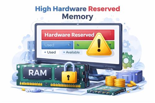 하드웨어 예약 메모리는 원래 어느 정도 존재하지만, 총 RAM의 절반 수준으로 커지는 경우는 흔치 않습니다. 이럴 때는 “Windows가 RAM을 많이 쓰는 중”과는 다른 문제일 가능성이 높습니다.
